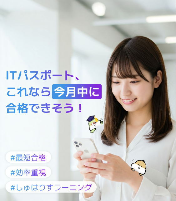 しゅはりすラーニング は、年間応募者30万人以上の今注目の国家資格「ITパスポート」を
