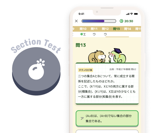 全16あるセクションの終わりには、制限時間付きの過去問集「セクションテスト」をご用意。
