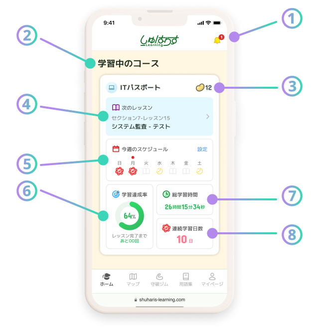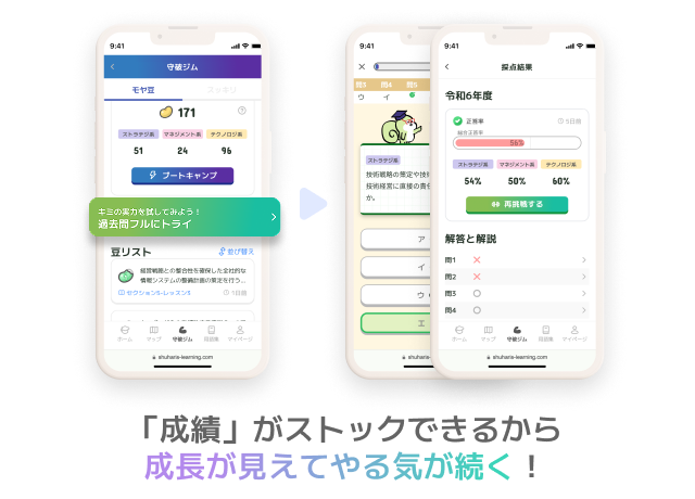 スマホ1台で、合格に必要な知識のインプットからアウトプットまで、すべての学習が完結します。