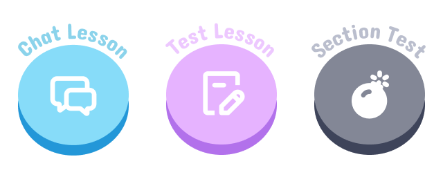 テストレッスンは、1〜3個のチャットレッスンに対して1つ設定されているレッスンで、チャットレッスンの内容に紐づいた10問前後の過去問に挑戦することができます。