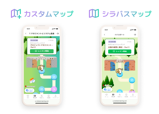(※診断テストを受けていない場合は「マップ追加」ボタンが表示され、タップすると診断テストを受けた後にカスタムマップが作成されます。)