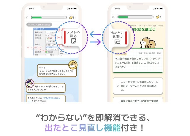 内容を思い出したら、「テストへ戻る」ボタンをタップし、問題に再トライしてください。